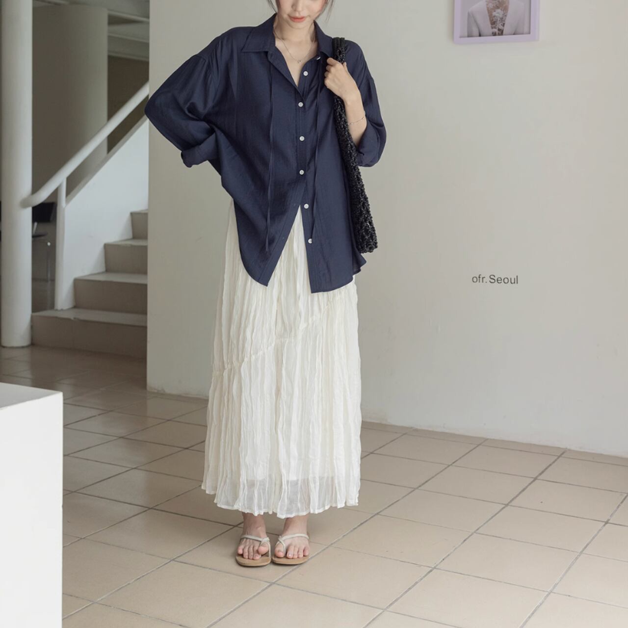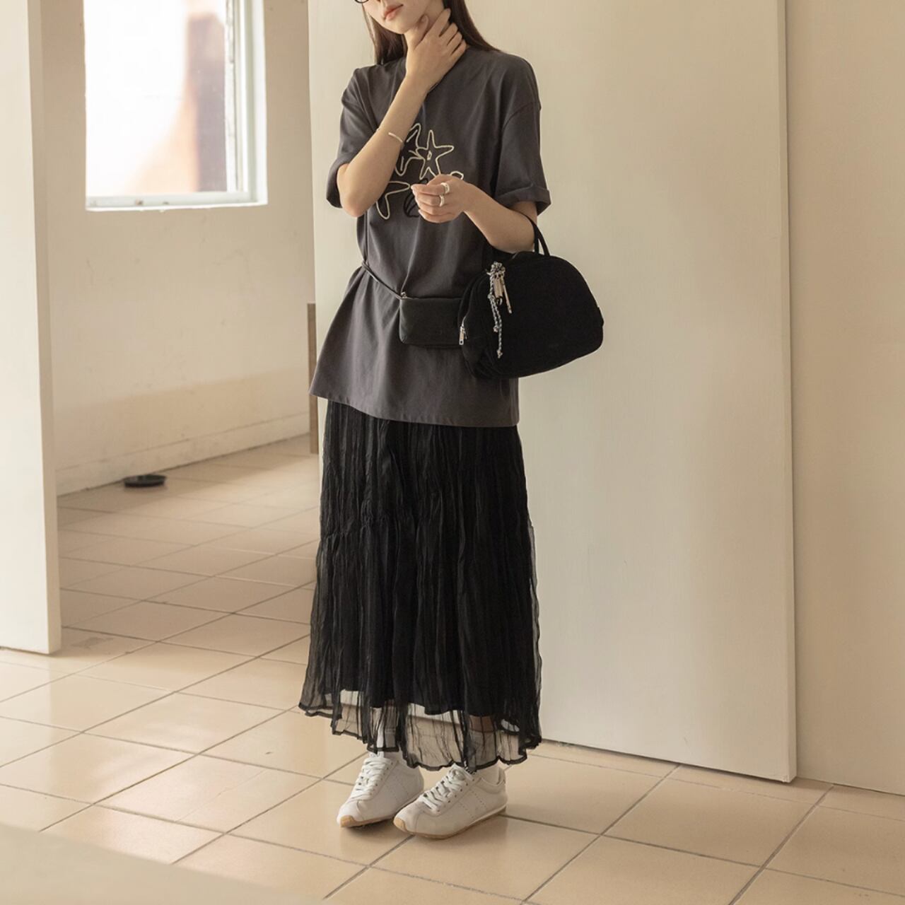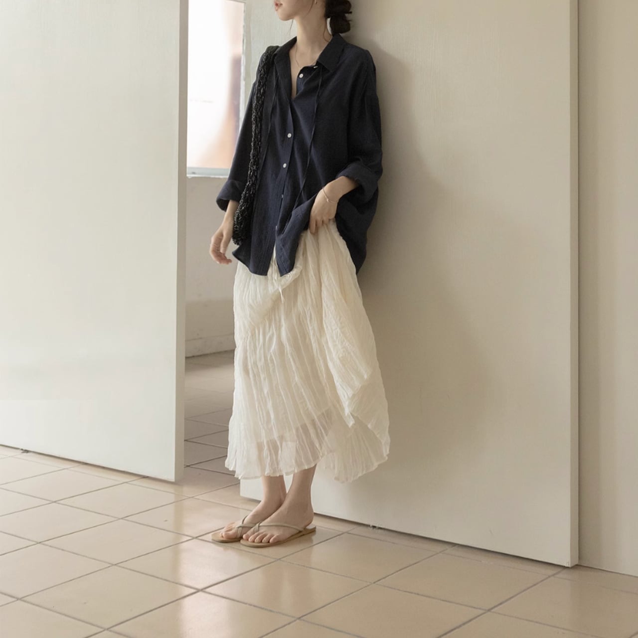 さりげないシボ感が表情豊かに揺れる、軽やかなプリーツロングスカート。