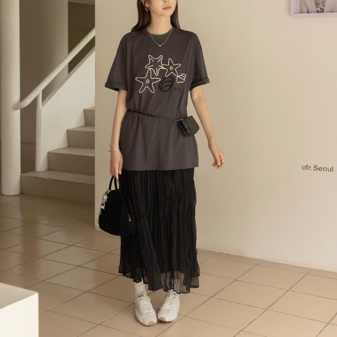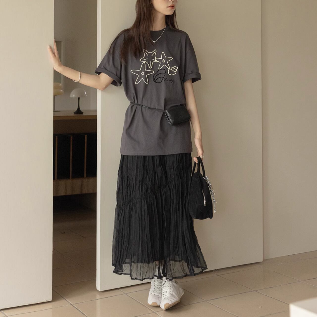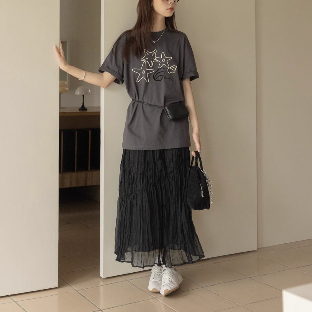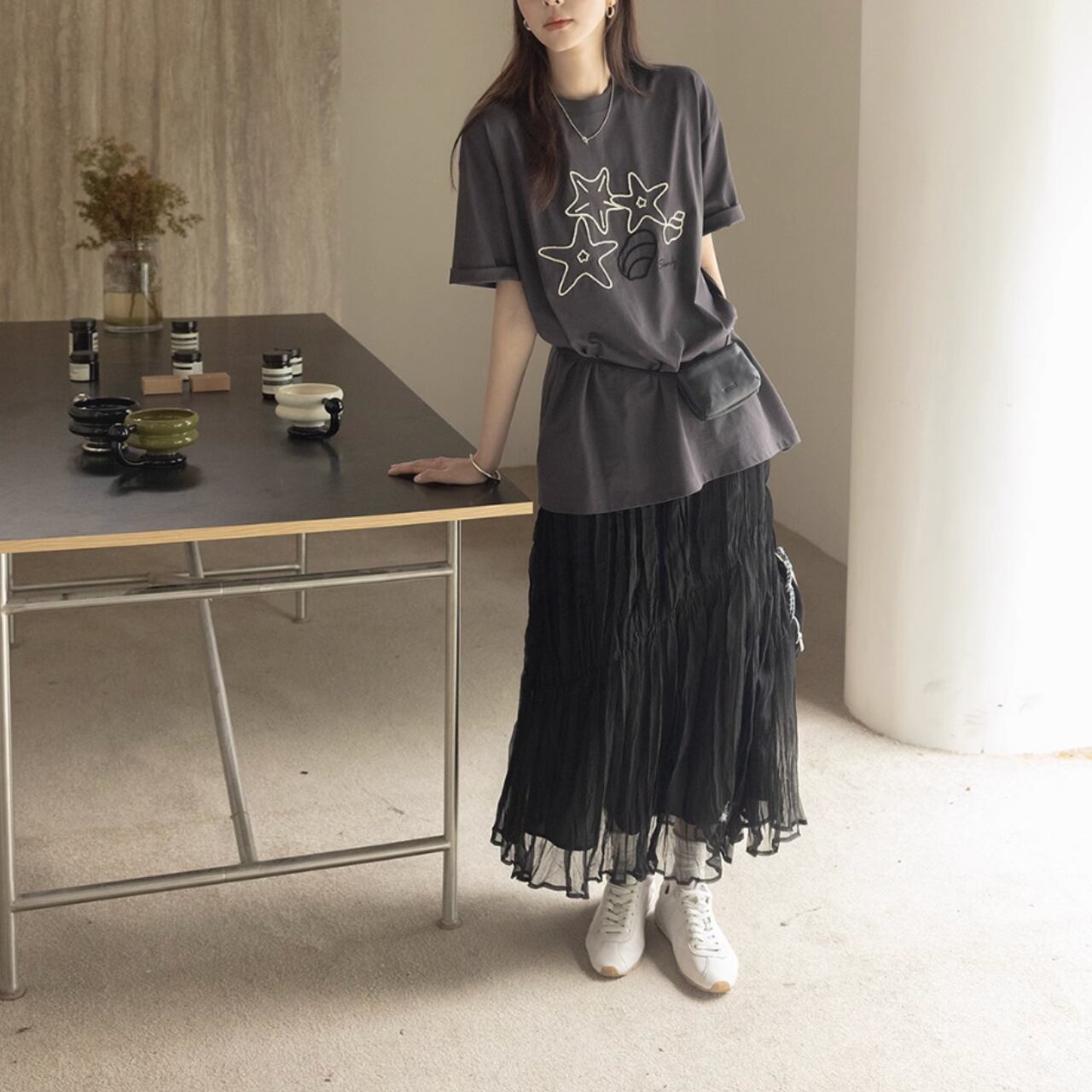 さりげないシボ感が表情豊かに揺れる、軽やかなプリーツロングスカート。