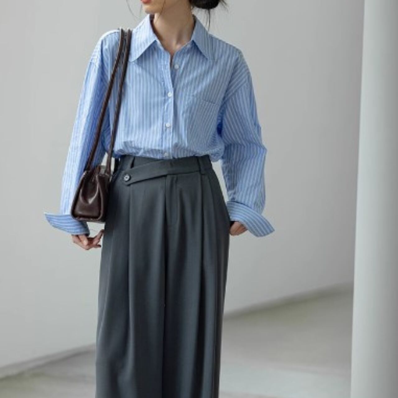 きれいとカジュアルの程よいバランス感が魅力のストライプシャツ。