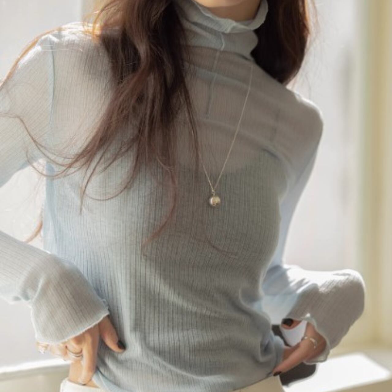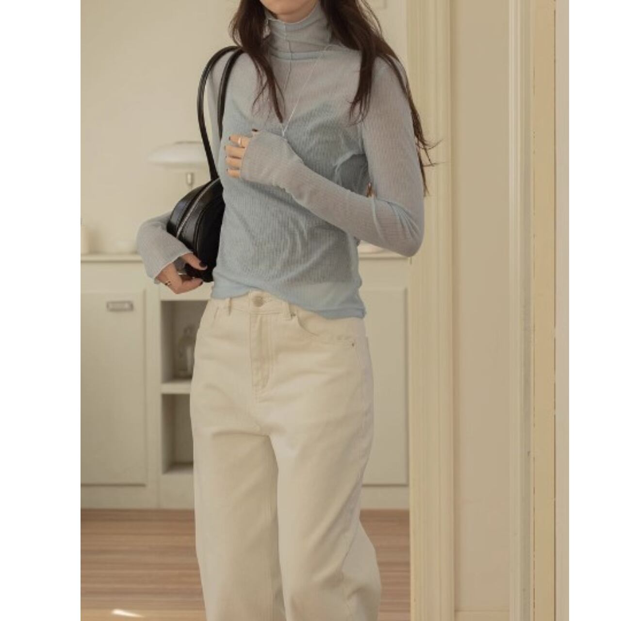 ほんのりシアーな素材感やゆるすぎずぴったりしすぎない絶妙なサイジング。