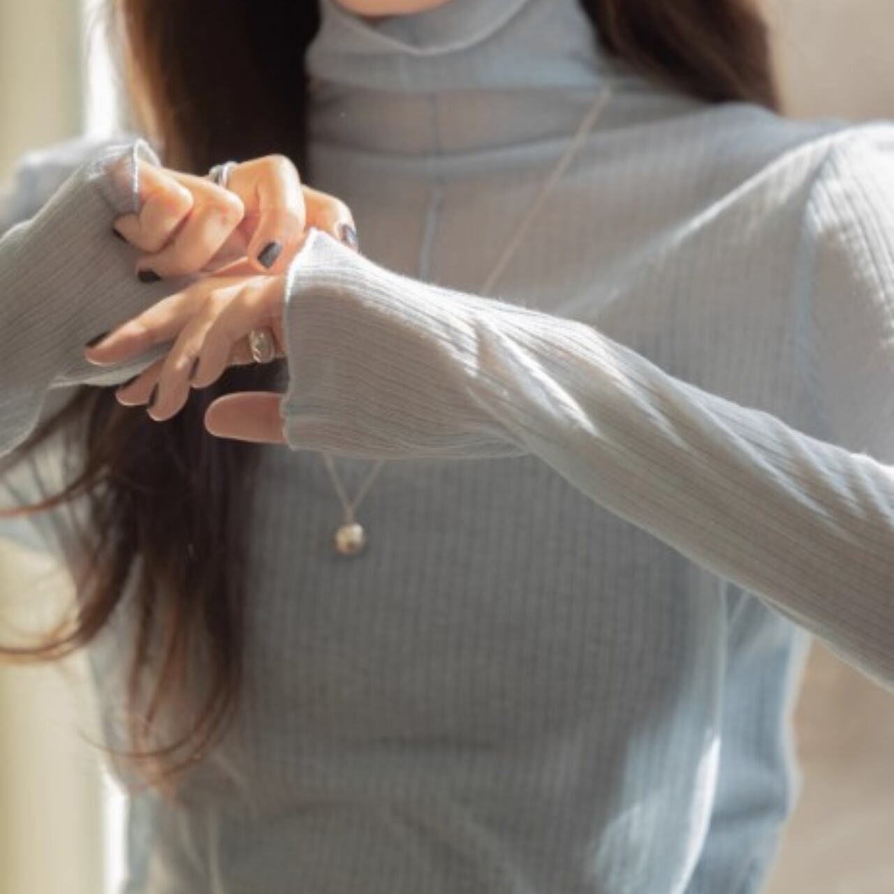 細かいリブ編みで肌への負担が少なく、優しい肌触りです。